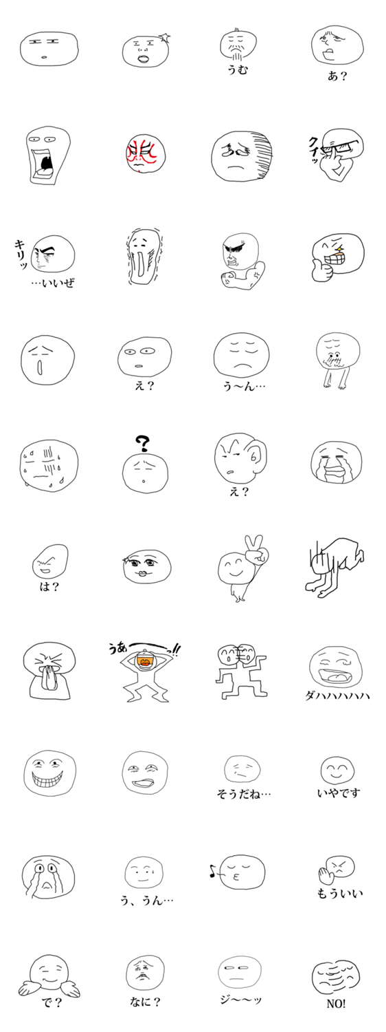 シンプルでゆるいへんてこな顔のスタンプ 毒もあります