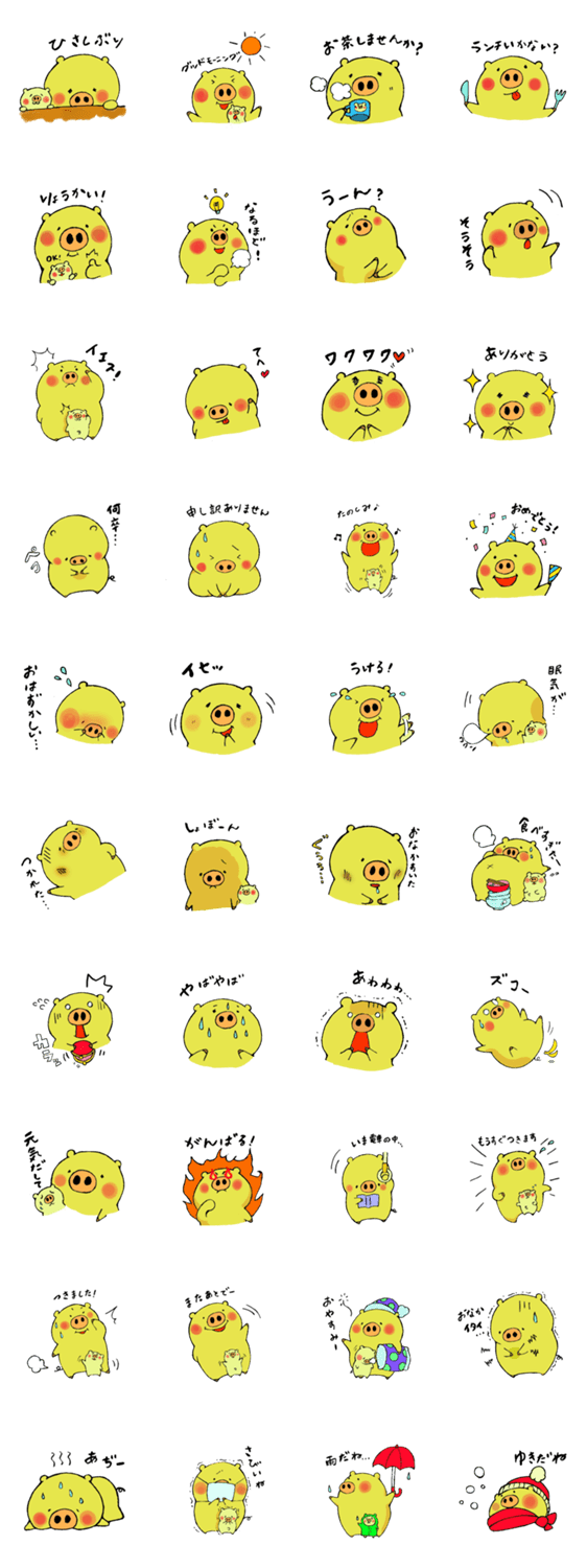 便利なひと言が入ったうっかりブタとん太のスタンプです。たまにちゃっかりこぶたのとんぺいも登場します。