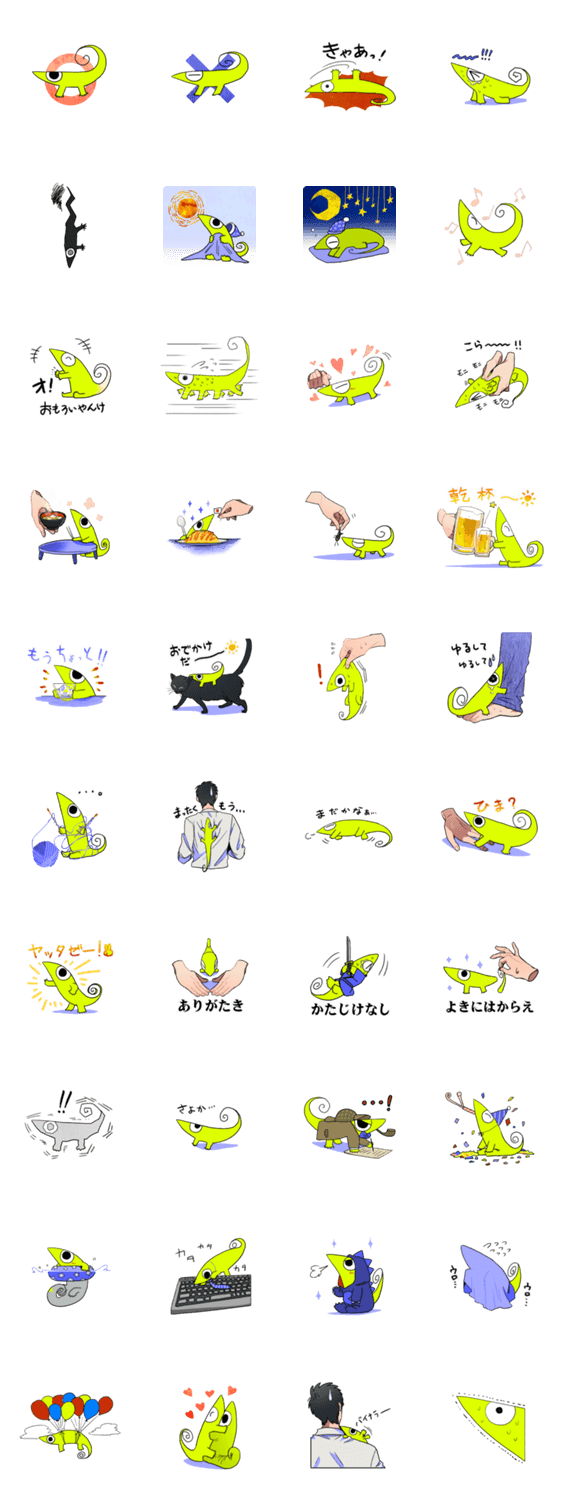 おまえはとかげなのか?食って食われて、リアルでもないデフォルメでもない何でもアリな日常系とかげのスタンプです。