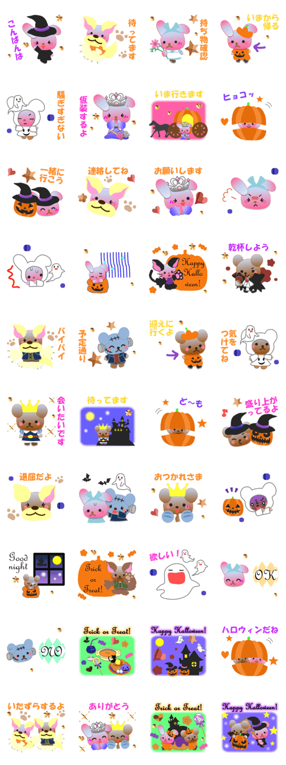 うさぎとくまのスタンプです。ハロウィンバージョンです。
