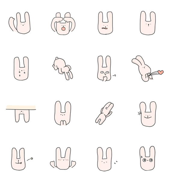 無表情かと思いきや、がっつり顔に出てるし、なんなら体張ってる、そんなうさぎ。1つ1つ、複数の意味でとらえられるので、いろんな場面で使えます。
