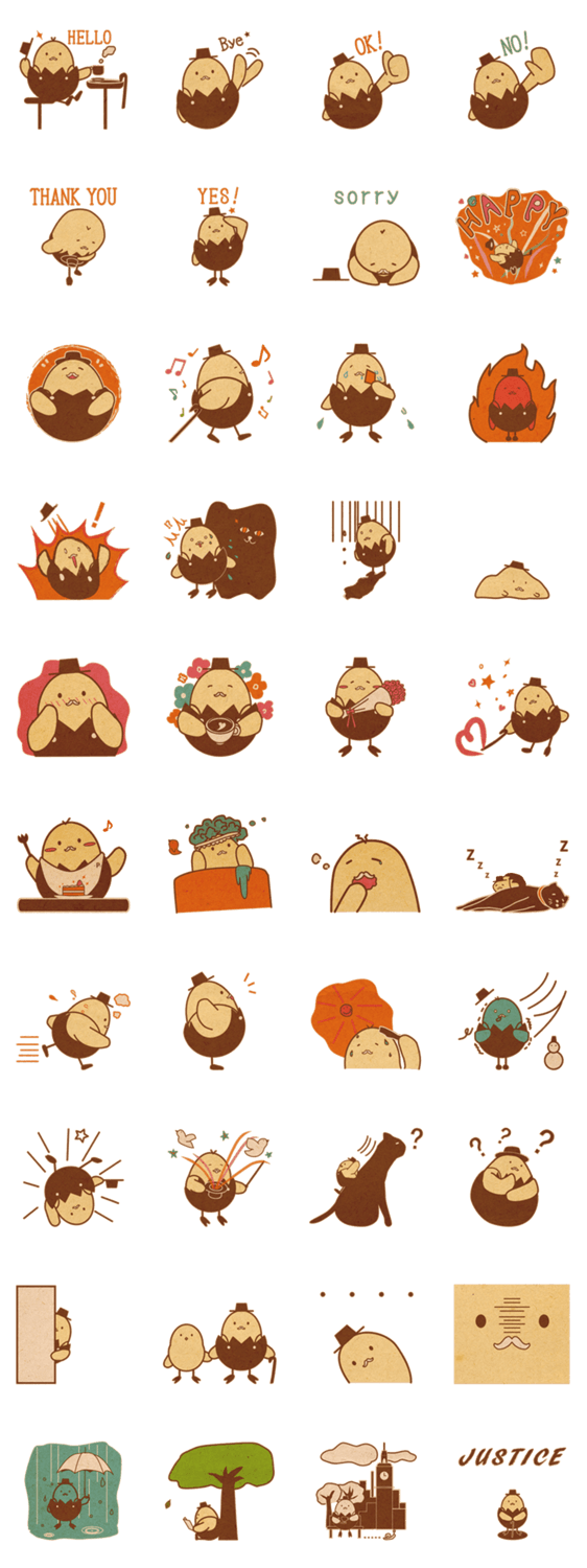 ひよこ紳士のかわいいスタンプ。ひよこ紳士が毎日をちょっとだけステキに彩ります。