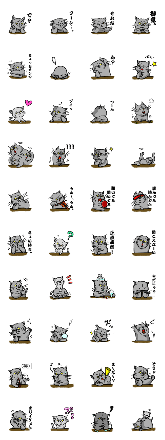 だらしなく太った猫のスタンプです。かわいい子猫もいます。