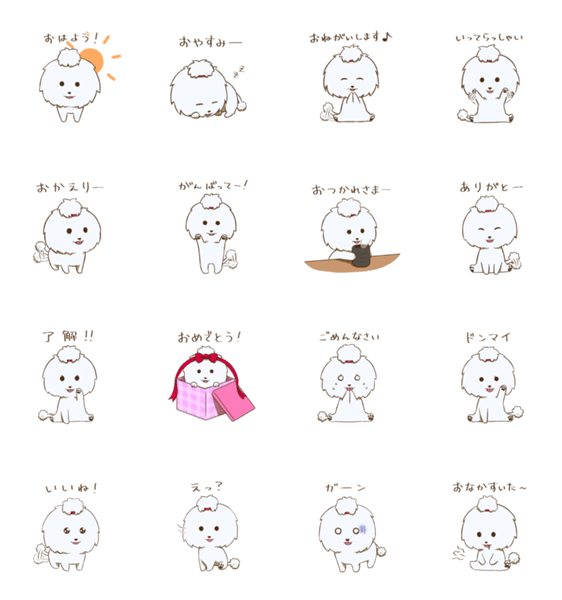 舌が常に出てるのがチャームポイント白いプードルの日常使いのスタンプです。 おとぼけ顔で癒しますよ。