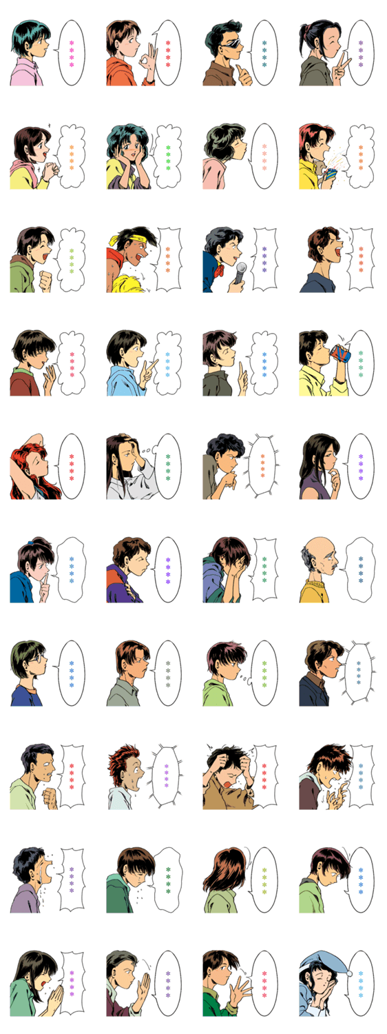 人々のスタンプ、横顔・カスタム編です。 吹き出し内に好きな言葉を入れられます。(最大文字数は8文字です)購入前に必ずプレビューしてデザインを確認してください。