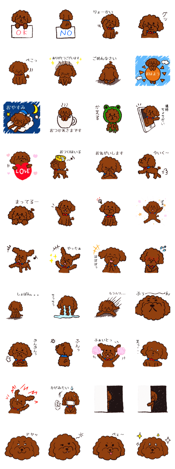 トイプードルのスタンプ トイプー好きへ送る、トイプー好きの為の、トイプー犬のスタンプです。日常会話で使える トイプーのスタンプ★