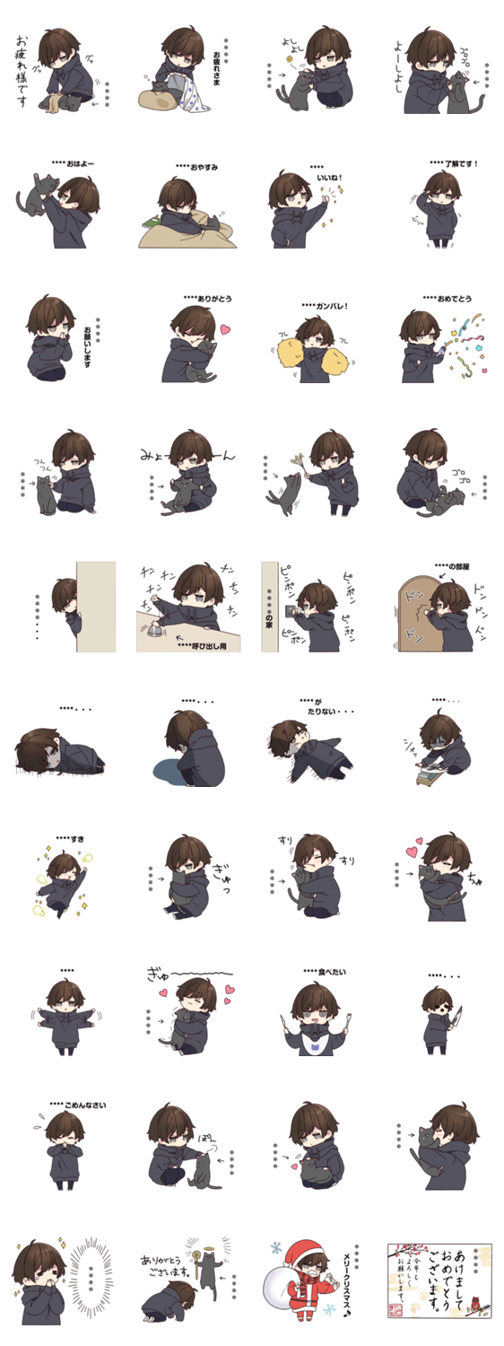 無気力に生きてるけど気持ちはちゃんと伝えたい・・・クリスマスとお正月もこれでずっと一緒だよ。そんなメンヘラ男子のスタンプ第5弾。7文字まで対応