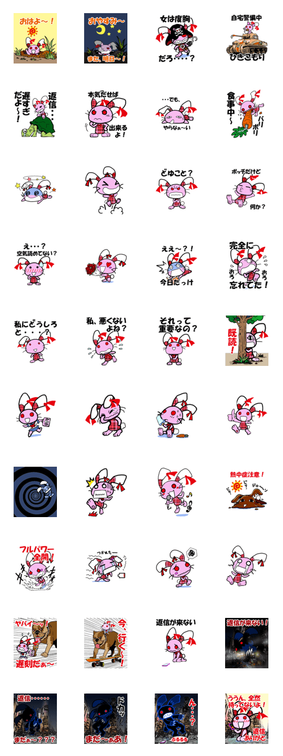 ギガの第四弾スタンプ、あのラブ・ラビがスタンプになって登場だよ~。今回はあの大怪獣MADAGOに変わって、兎怪獣が大暴れ、返信しない人に送ってあげてネ。