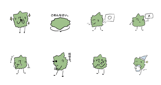岩手県の形をした男の子、岩手くんのスタンプ。 岩手弁はほとんど喋らないから使いやすいよ。