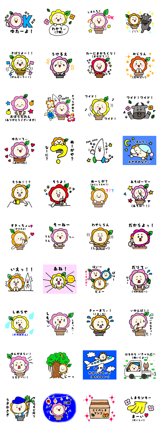 徳之島スタンプ「しまばーな2」標準語付き -LINEスタンプマニア