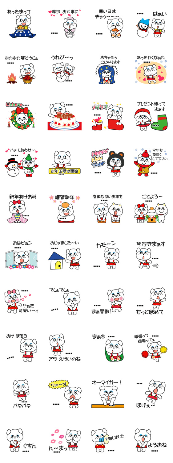 楽しくて可愛いワンちゃんのクリスマスやお正月も使える冬のスタンプです。