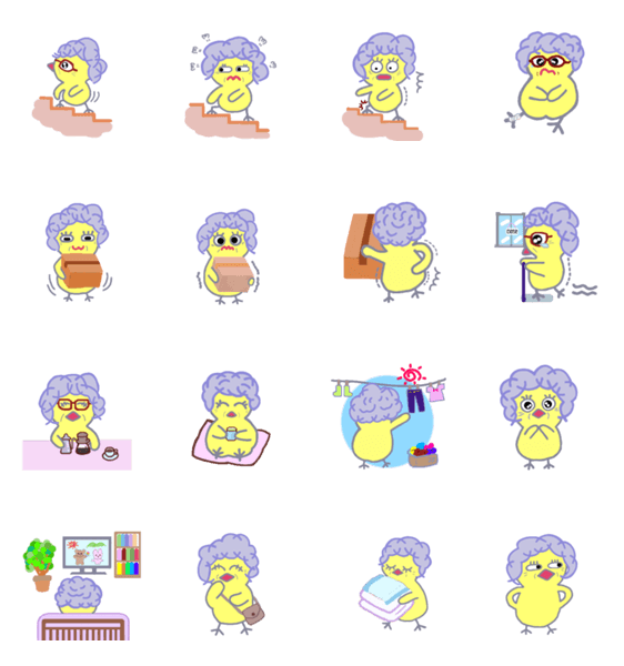 ぴよよおばあちゃんのスタンプです。 日常の会話を可愛く盛り上げます。