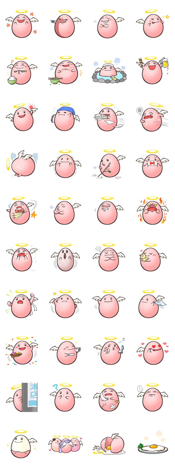 天使たまごはタマゴの天使。奴らはかわいくて、ちょっとマヌケ。ハッピーでシュールなスタンプをお楽しみあれ!