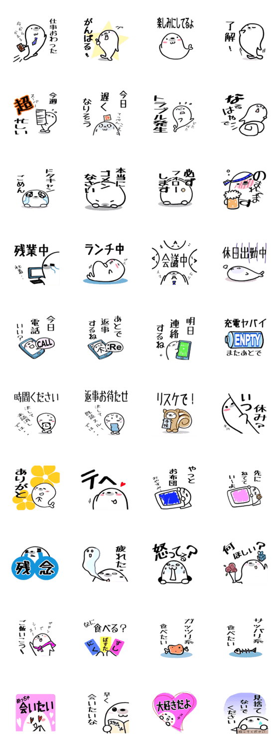 返信するヒマもないほど多忙な彼氏にかわってアザラシがお伝えします。スタンプだけで彼女とコミュニケーションがとれる、、、はず。