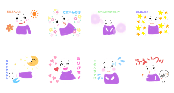 紫ワンピの白い人スタンプ -LINEスタンプマニア