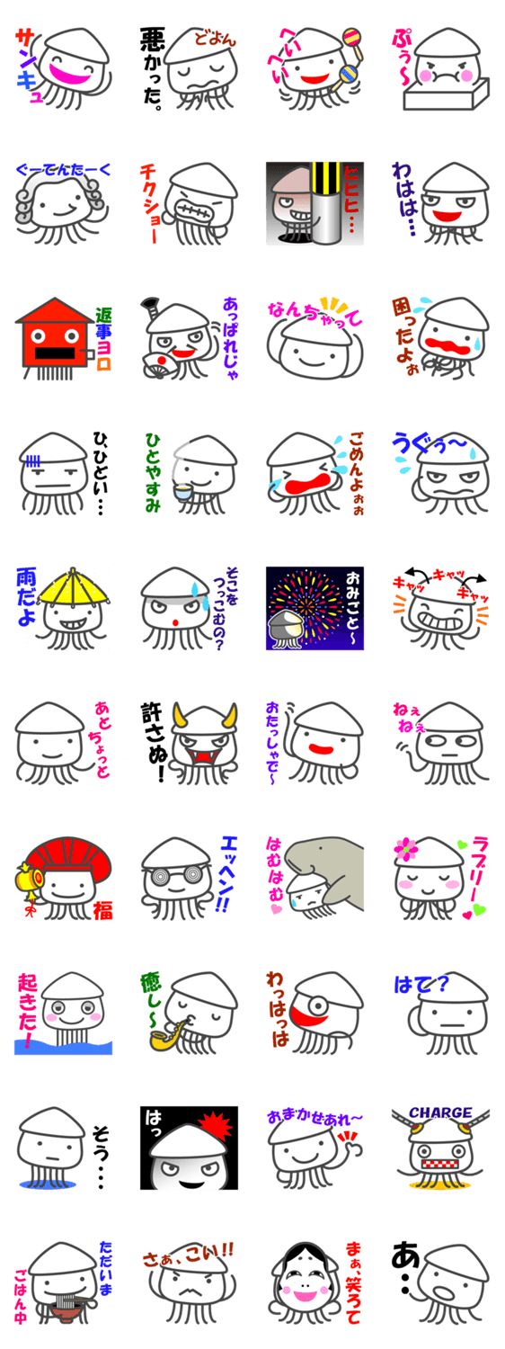 ikasキャラ第6弾。どこを取ってもイカだらけのスタンプ、第3弾です。ますますパワーアップ中?