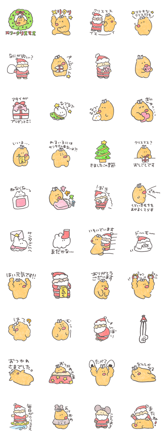 サンタさん、トナカイ(ムキムキくんもいるよ!)をメインに、クリスマスのこともあれば年始のあいさつもあったり、365日いつでも使えるスタンプもあるよ!