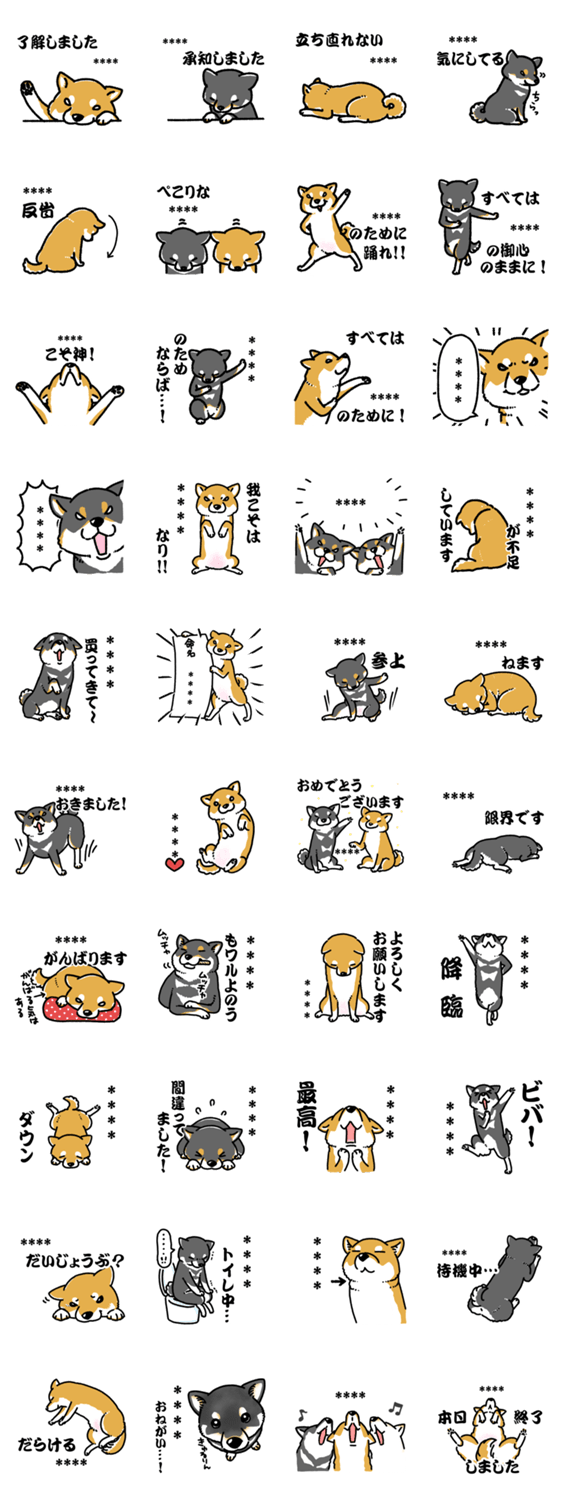 マキナルこと真希ナルセによる柴犬好きのための柴犬カスタムスタンプ。赤柴と黒柴です。