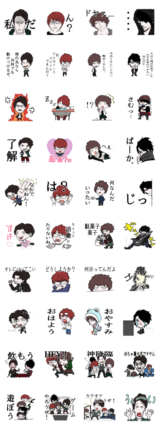 「鍋島マグロ団!」の四人がLINEスタンプで登場!多彩な表情にセリフ込みの個性的な 団長 ザエ ピス キム のキャラクターを使いわけよう。