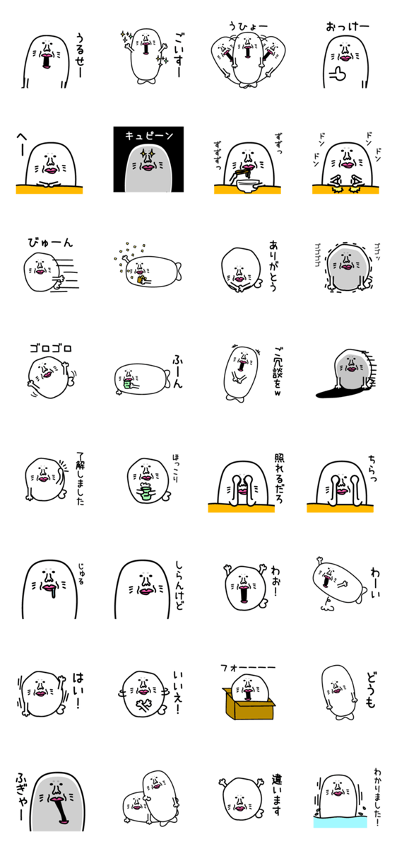 3個目です。シュールでちょっとクセのあるアザラシです。絵文字もあります。