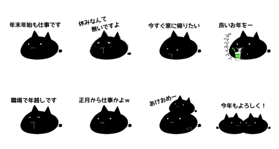 年末年始で忙しいネコクロウさん -LINEスタンプマニア