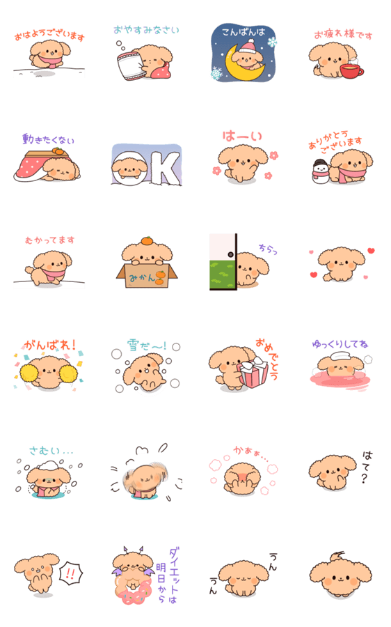日常会話に使える!もこもこの冬毛がカワイイ犬のアニメーションスタンプ♪