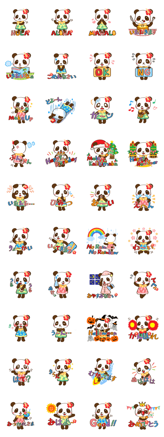 ハワイ大好き!フラ大好き!な人の為のスタンプです。かわいいアロハ★パンダと日常で使えるスタンプを用意しました。