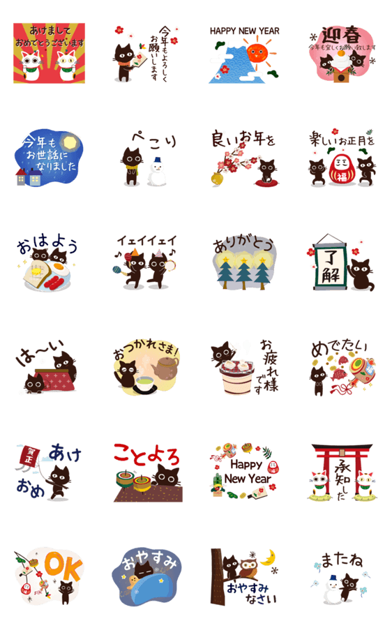 動く!大人かわいい絵本の猫3[年末年始] -LINEスタンプマニア