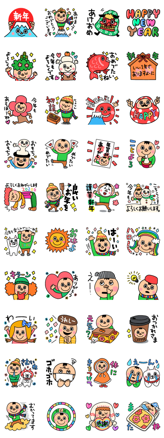 新年の挨拶や日常にも使えるスタンプを作りました。 2020年もみなさまにとって素敵な一年になりますよーに。