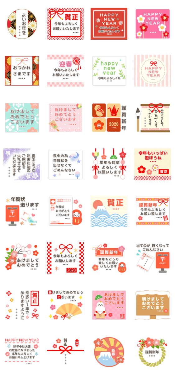 年末年始の挨拶に使える便利なスタンプです。名前をいれて年賀状がわりに♪かわいいモノが好きな大人女子におススメ!シンプルなので使いやすい。お正月。5文字まで。