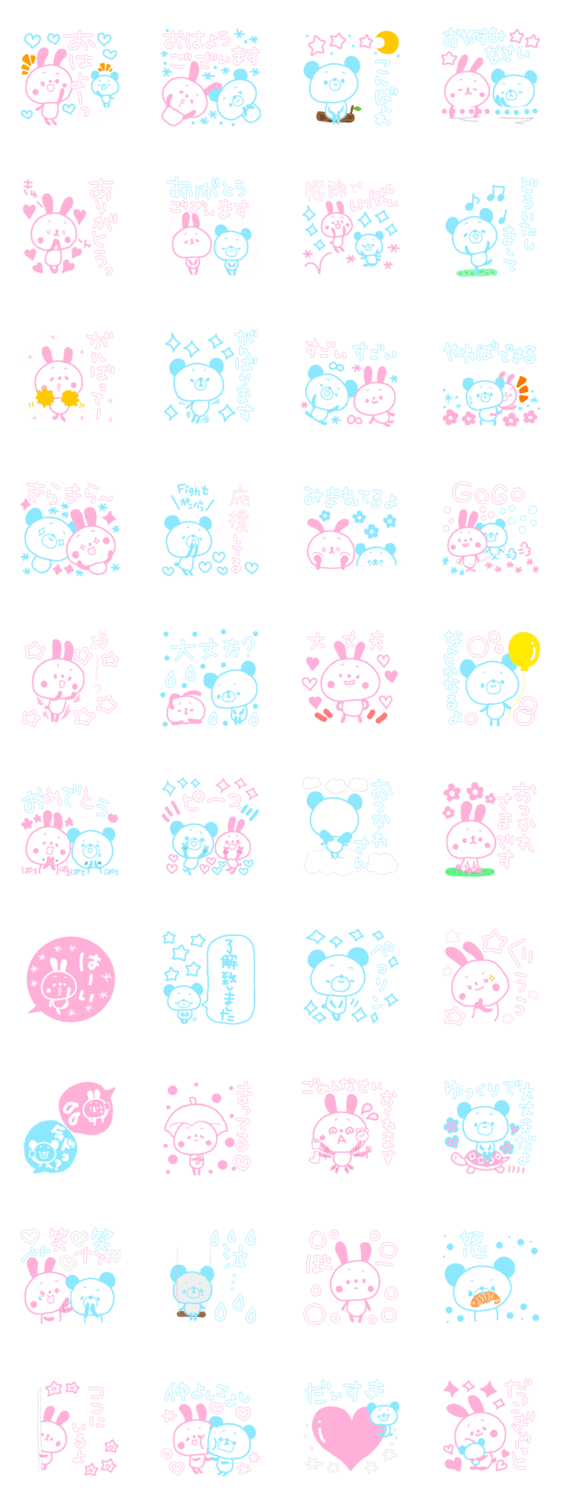 パステルカラーのうさぎとくまさんです☆シリーズ①はピンクと水色で可愛く♡シリーズ①は良く使う言葉、応援、励まし系になってます♪