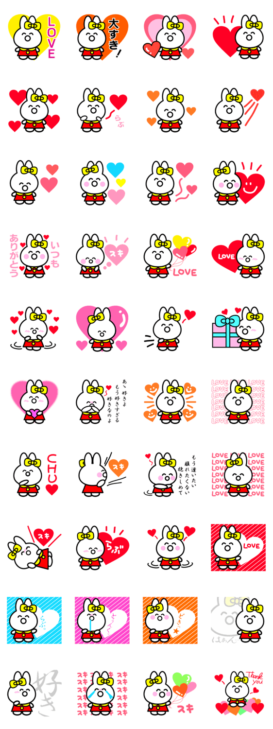 気持ちを抑えきれないうさぎによる愛情表現が詰まったスタンプです。 大好きなあの人やこの人に送りまくってください。