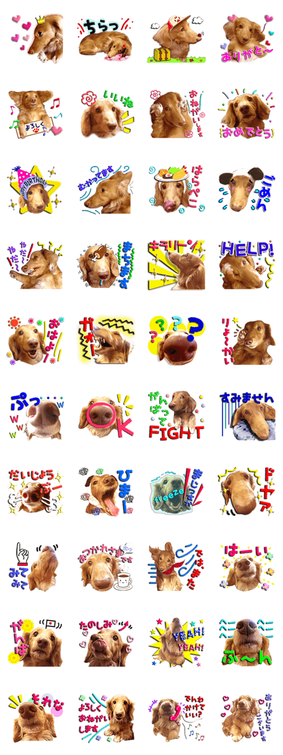 ダックスフンドのリアルな写真のかわいいスタンプです。 日常会話に便利なスタンプです。でか文字でカラフル、毎日つかえます。