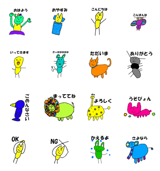 キツネマンとゆかいななかまたちの、あいさつスタンプです。