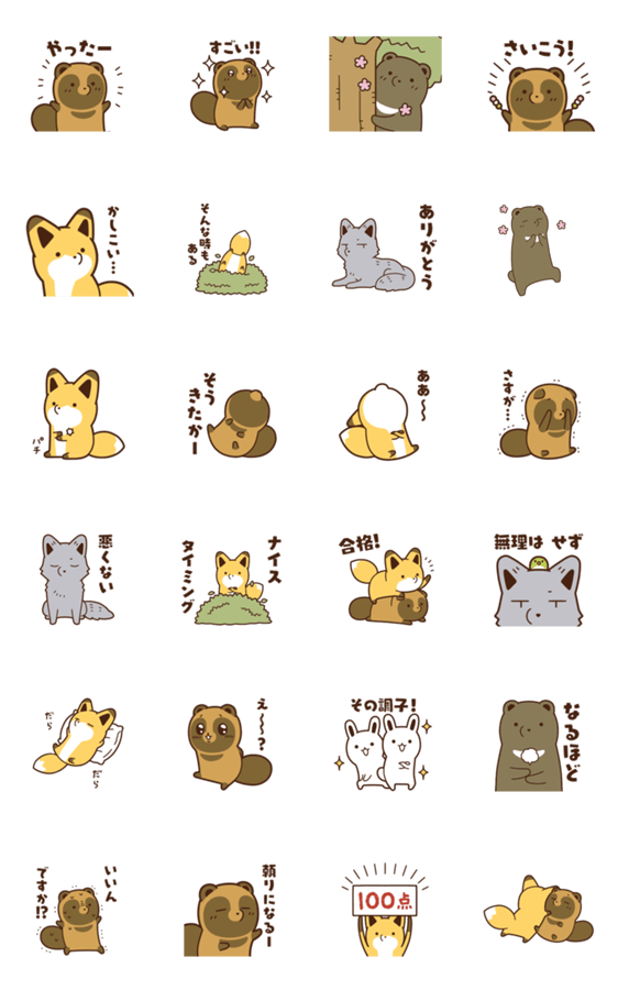 動くタヌキとキツネほめるスタンプ -LINEスタンプマニア