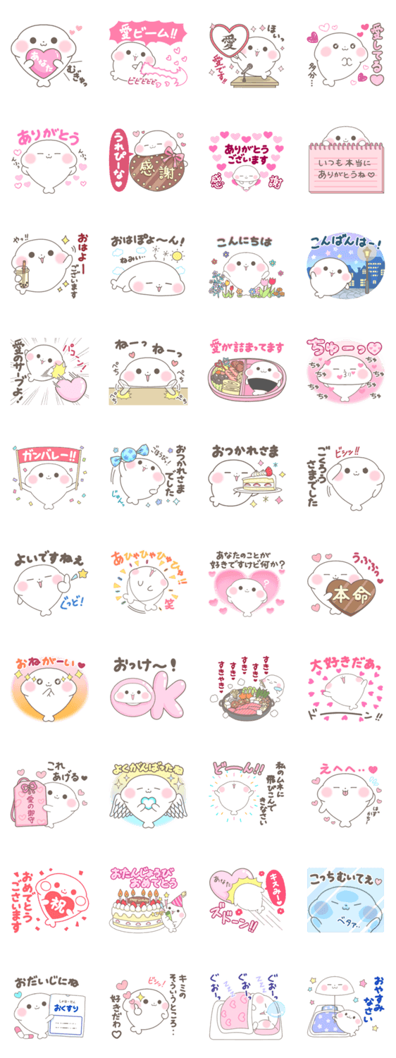 愛にあふれたアザラシさんのスタンプです。もっちりした大福みたいなアザラシさんです