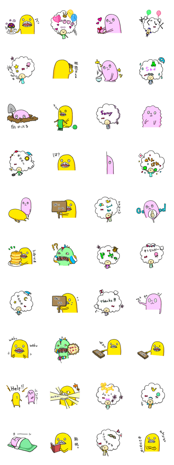 アフロちゃんとバナナチップスくんカマボコくんギャリウムくんをふくめた愉快な仲間の日常LINEスタンプです。