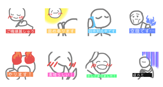 表情豊かな棒人間です。お試しで作ったので8個だけです。要望があれば40個ver.作ります。