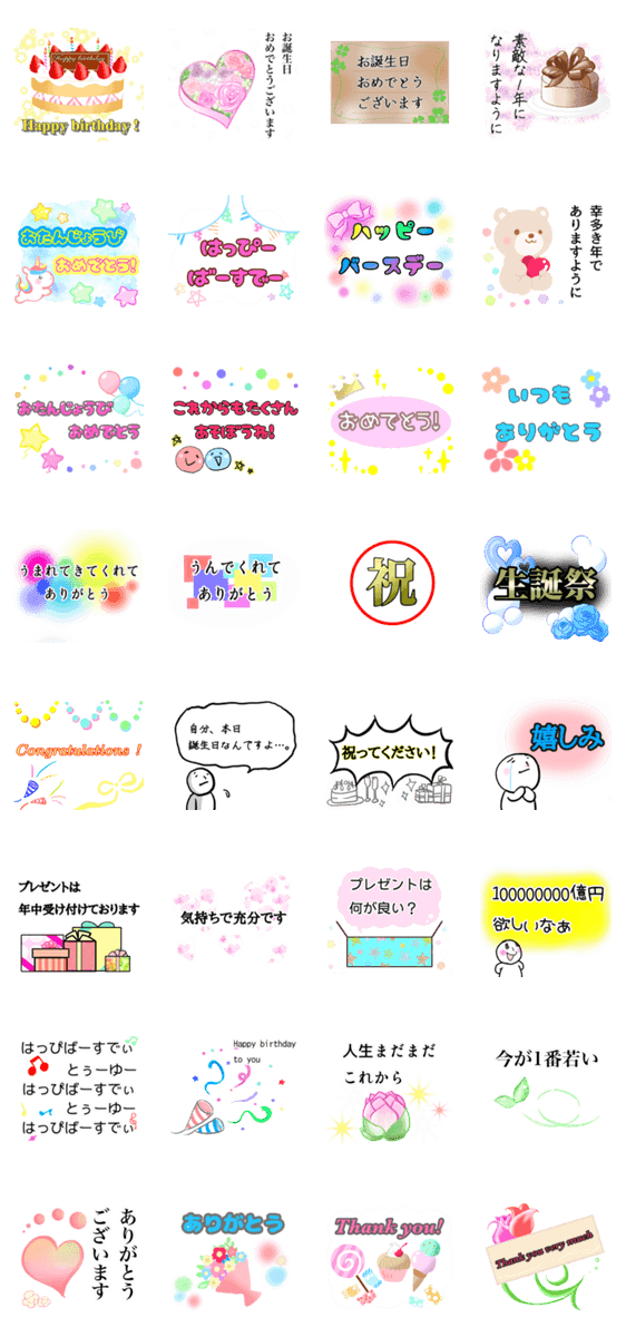 誕生日おめでとう系を詰め込んだスタンプ -LINEスタンプマニア