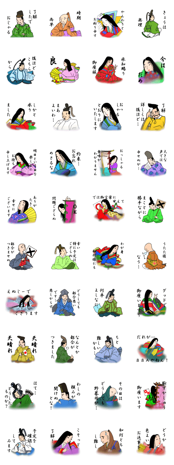平安時代のみやびな世界をスタンプで。イエス・ノー関連を集めました。