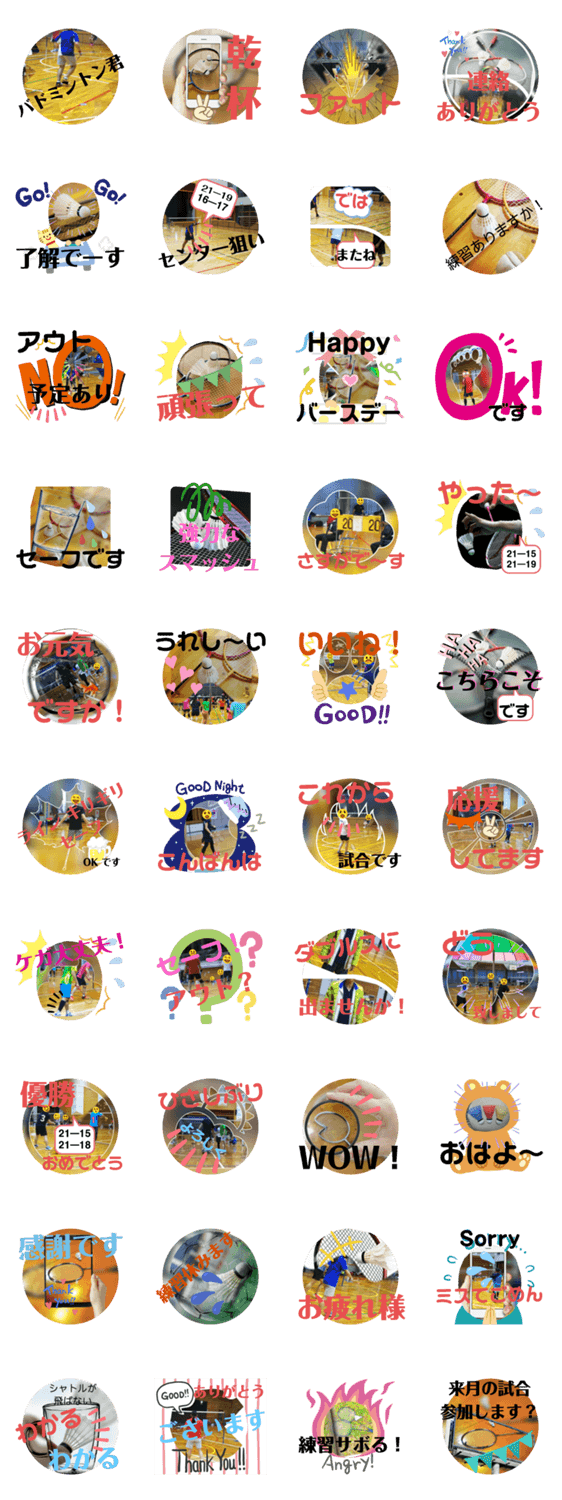 私が参加したバドミントン大会写真を編集してスタンプを作ってみました