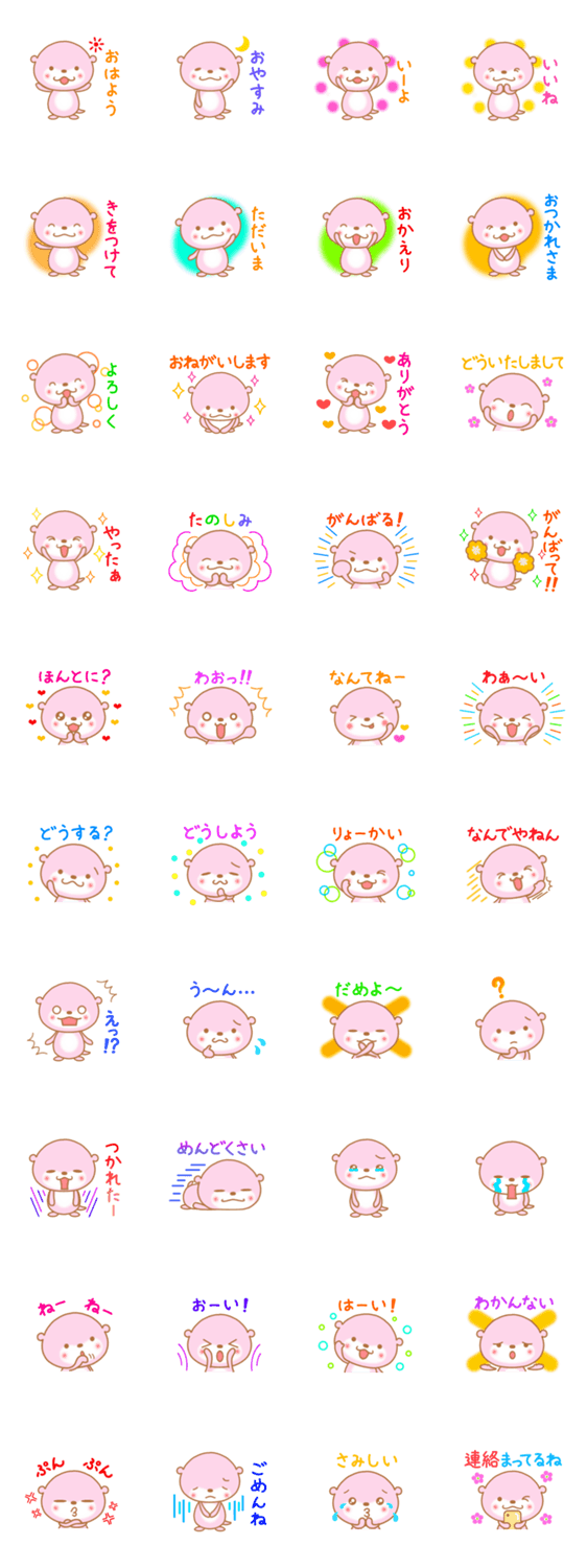 ピンクのカワウソの日常でよく使う言葉のスタンプ。