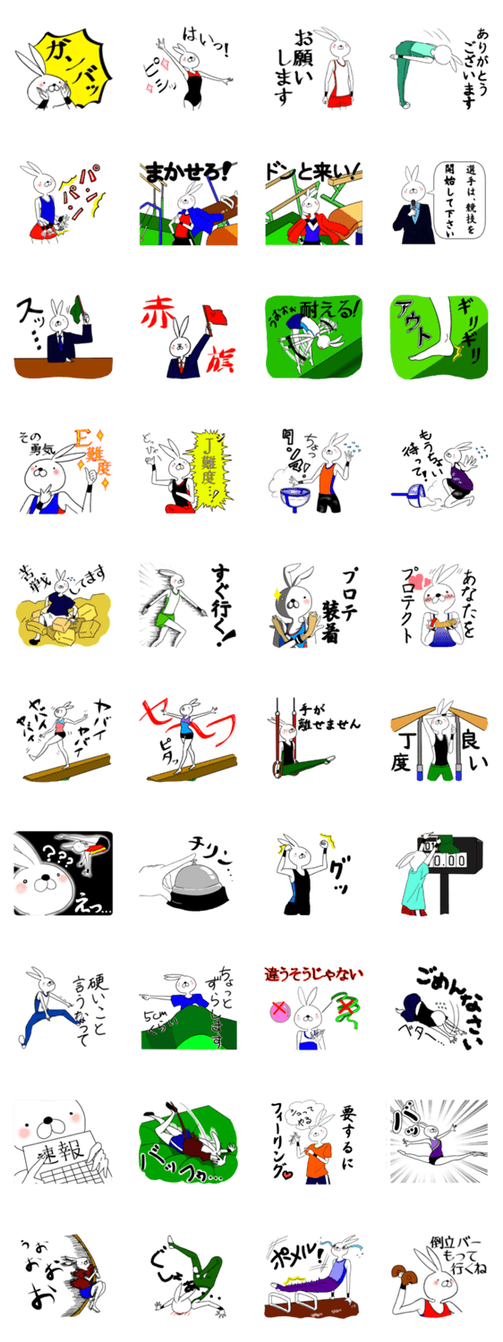 体操部に所属するうさぎ。 体操あるあるを日常でもお使いいただけます。