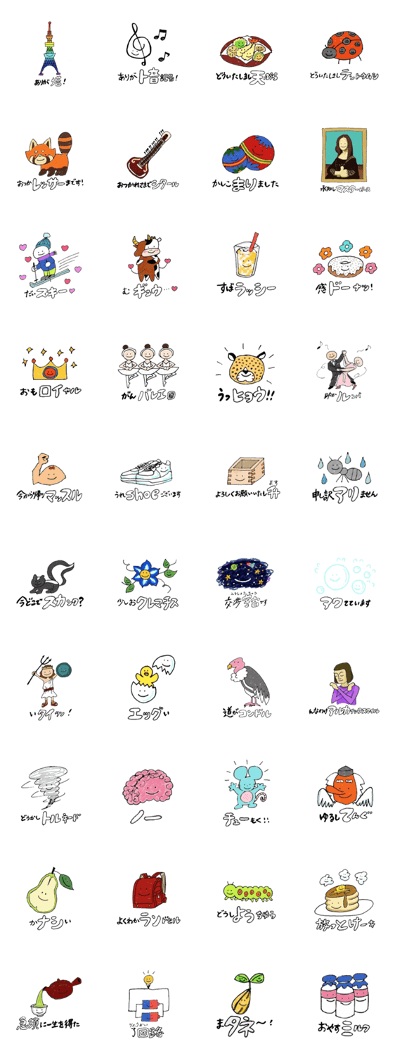 みんな本当は大好きなダジャレをふんだんに使ったスタンプです。トークを和ませるかわいくて気持ちの伝わるイラストです。敬語から辛口まであり更に使いやすくなりました。