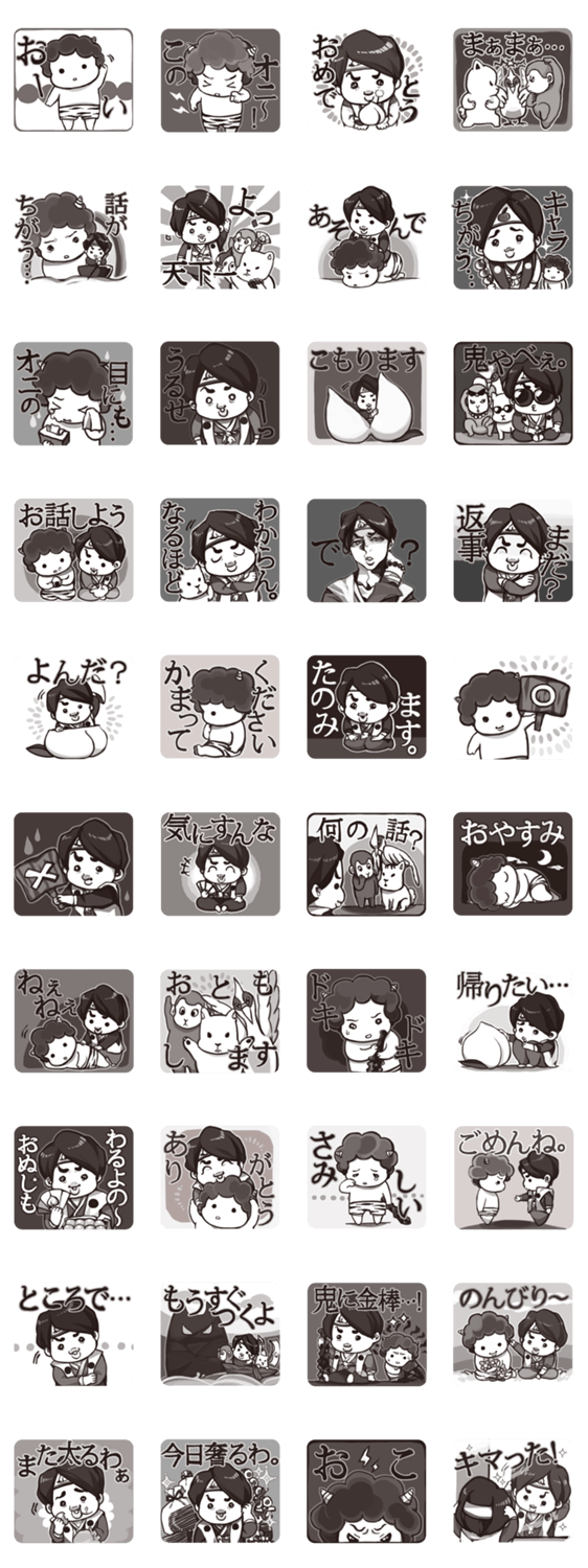 自由すぎるももたろうとのんびり屋さんのおに。なんだかんだで仲良しな二人の日常スタンプです。