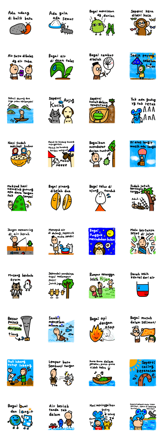 インドネシアのことわざのスタンプです。インドネシアや語学が好きな方、インドネシア語検定試験の勉強をしている方におすすめです!