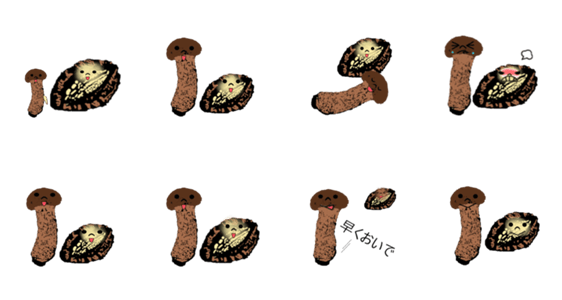 動く山の幸松茸幸君と海の幸鮑幸ちゃん -LINEスタンプマニア