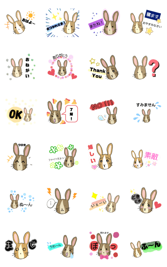 LINE Creators Studioでつくったスタンプです。うさぎの若が、イラストになりました。日常使えるスタンプです!