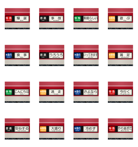関東の私鉄の通勤電車がモチーフです。挨拶文のバージョンで、英語と日本語の二ヶ国語表記です。リアルに鉄道車両の行先表示機を再現しました。