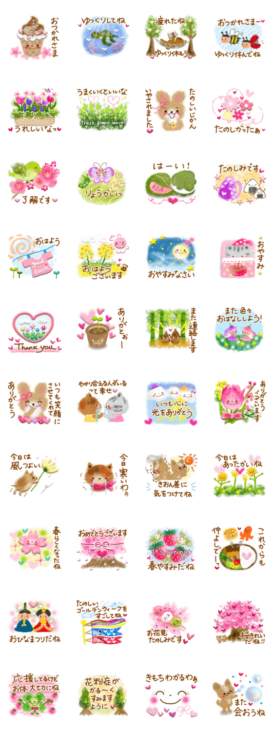 春らしさを感じる挨拶スタンプに、ふんわり癒しの言葉を入れました♡